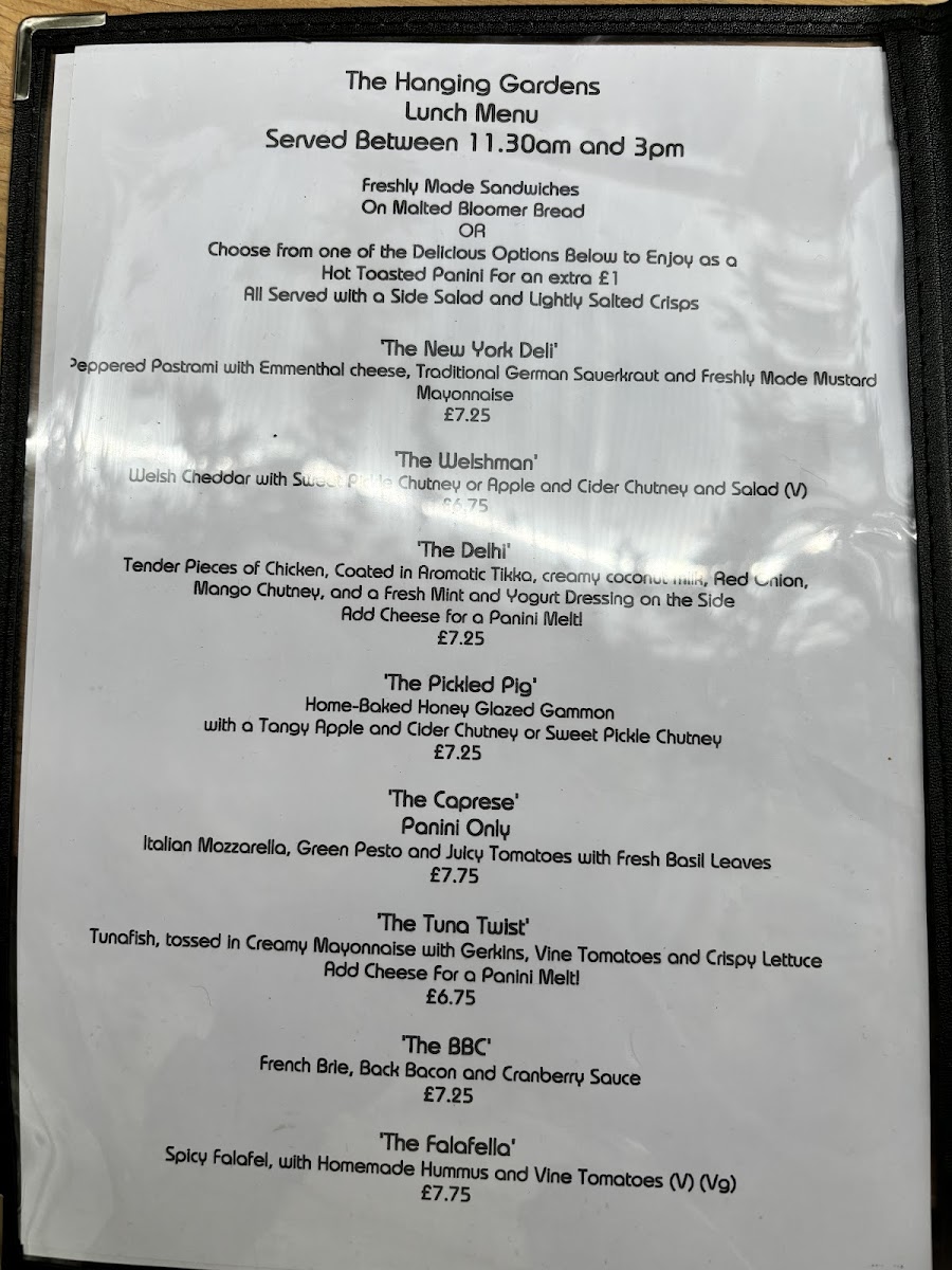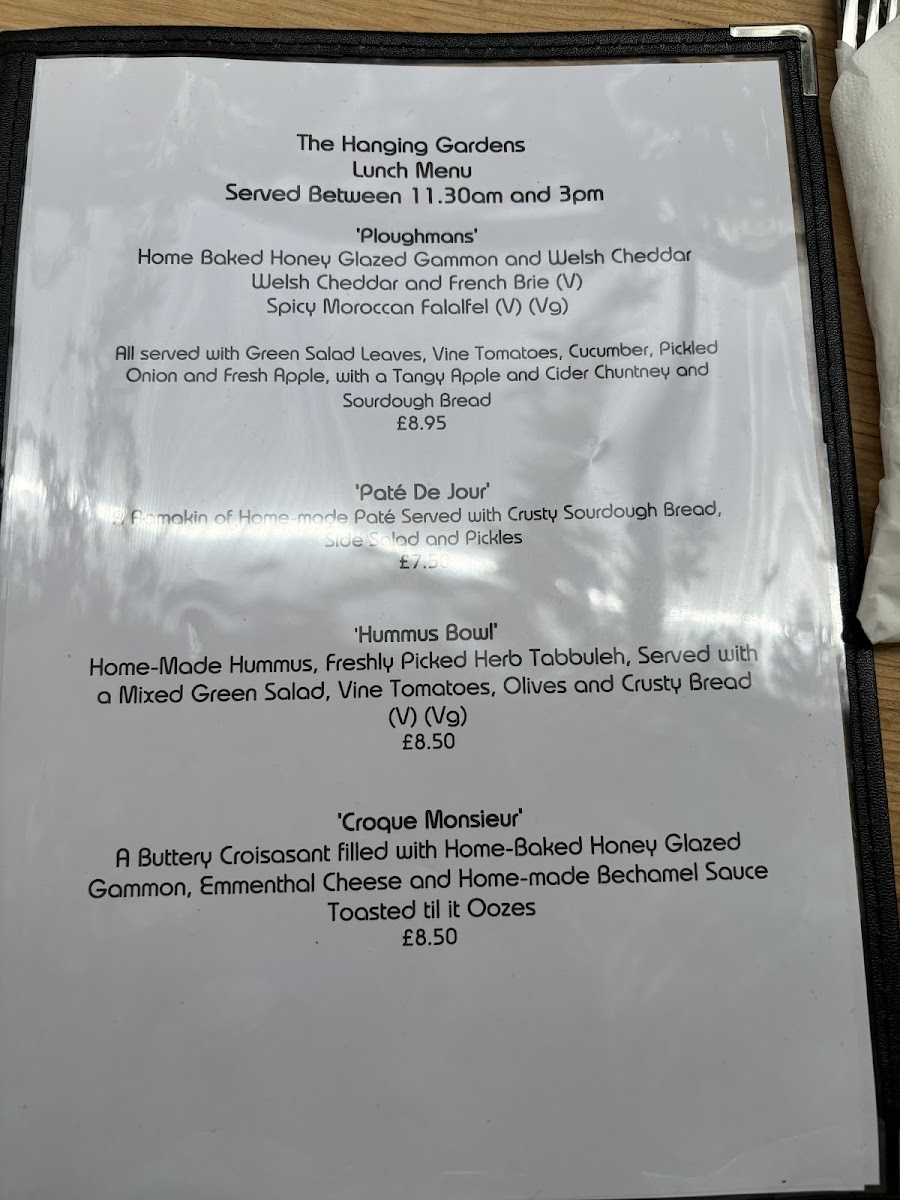 Before you leave, don't forget to admire the beautiful indoor plant arrangements that create a lush and inviting environment, making it not just a place to eat, but a botanical retreat for your senses. Come see for yourself why Hanging Gardens Cafe is a must-visit on your journey through Llanidloes!